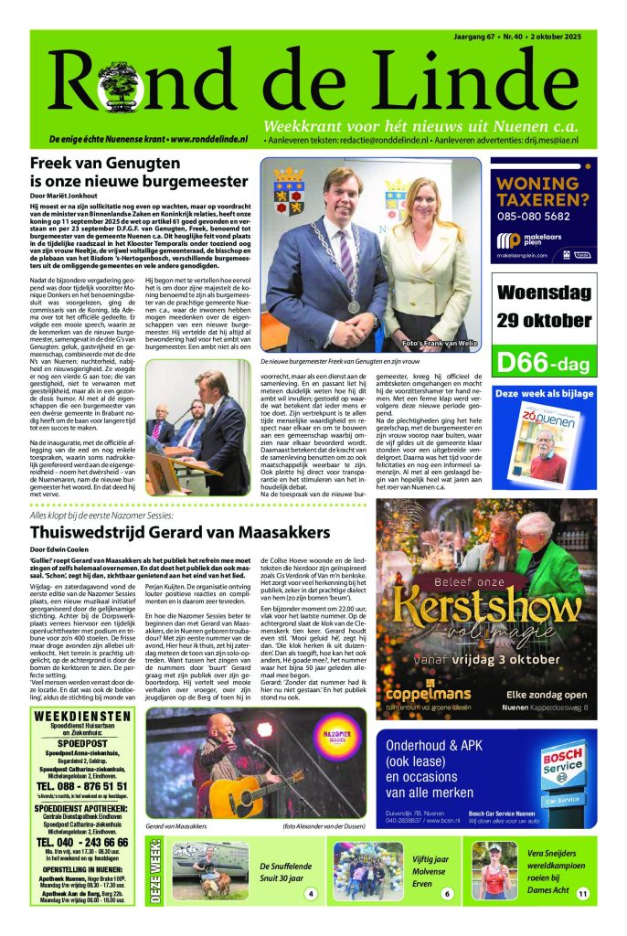 GemeenteNieuws Freek van Genugten burgemeester Nuenen Freek van Genugten is onze nieuwe burgemeester Door Mariët Jonkhout Hij moest er na zijn… Rond de Linde30 september 2025