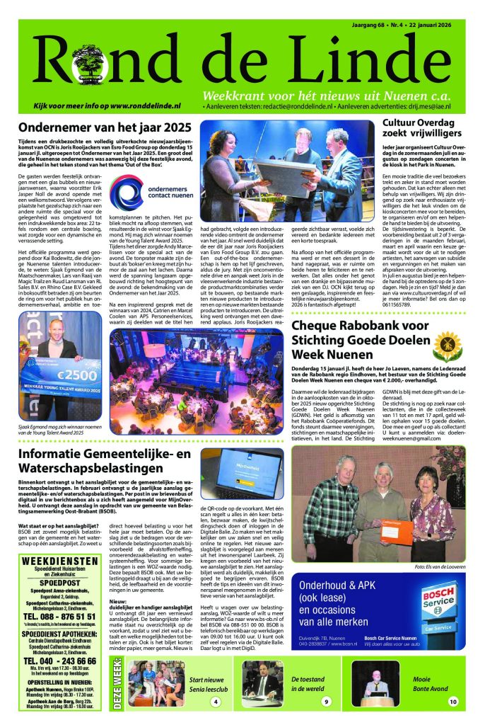 Nieuws Ondernemer van het jaar 2025 Ondernemer van het jaar 2025 Tijdens een drukbezochte en volledig uitverkochte nieuwjaarsbijeenkomst van OCN is… Rond de Linde21 januari 2026