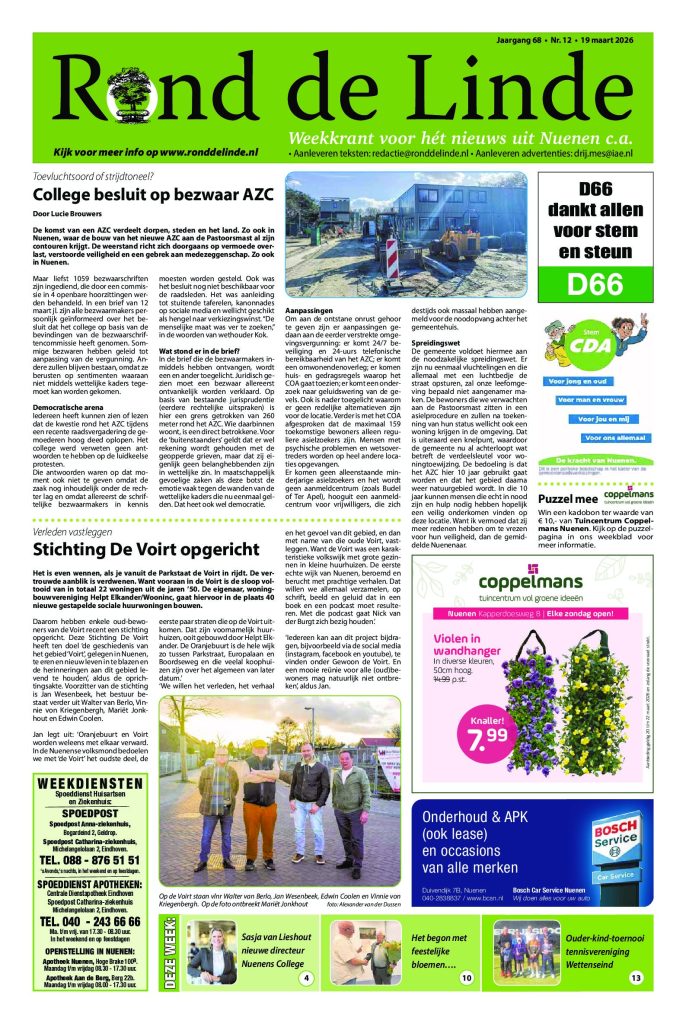 Nieuws Stichting De Voirt Verleden vastleggen Stichting De Voirt opgericht Het is even wennen, als je vanuit de Parkstaat… Rond de Linde18 maart 2026